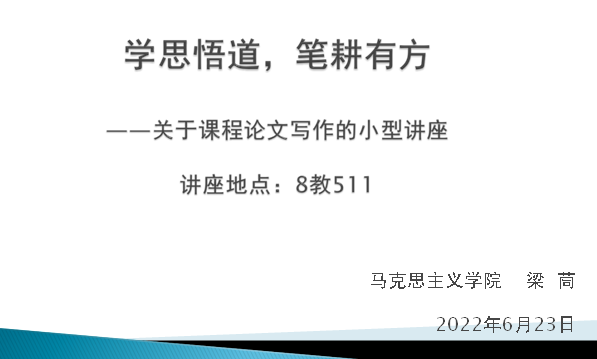 6月23日上午,“学思悟道,笔耕有方”小型讲座在公司四会校区8教511举行,讲座由公司教师梁茼副教授主讲,21级汉语言文学专业部分同学到现场聆听。
